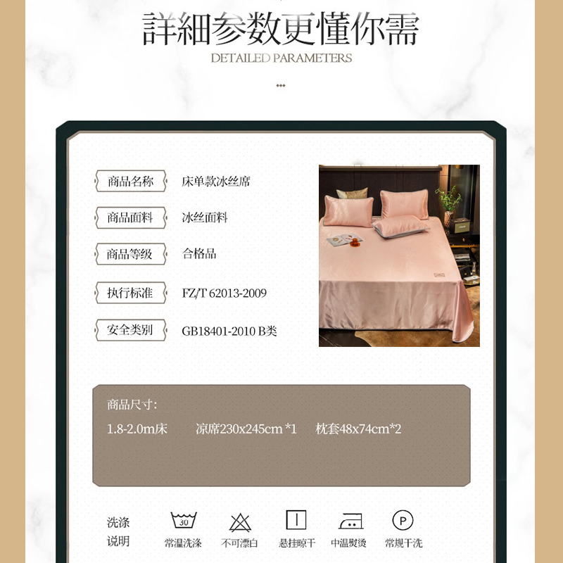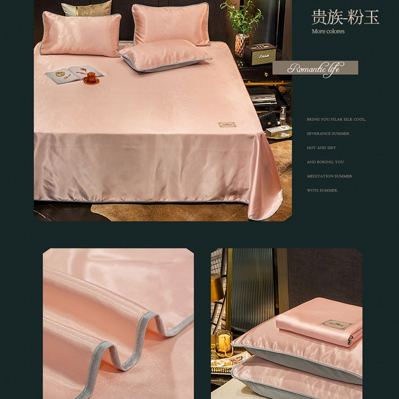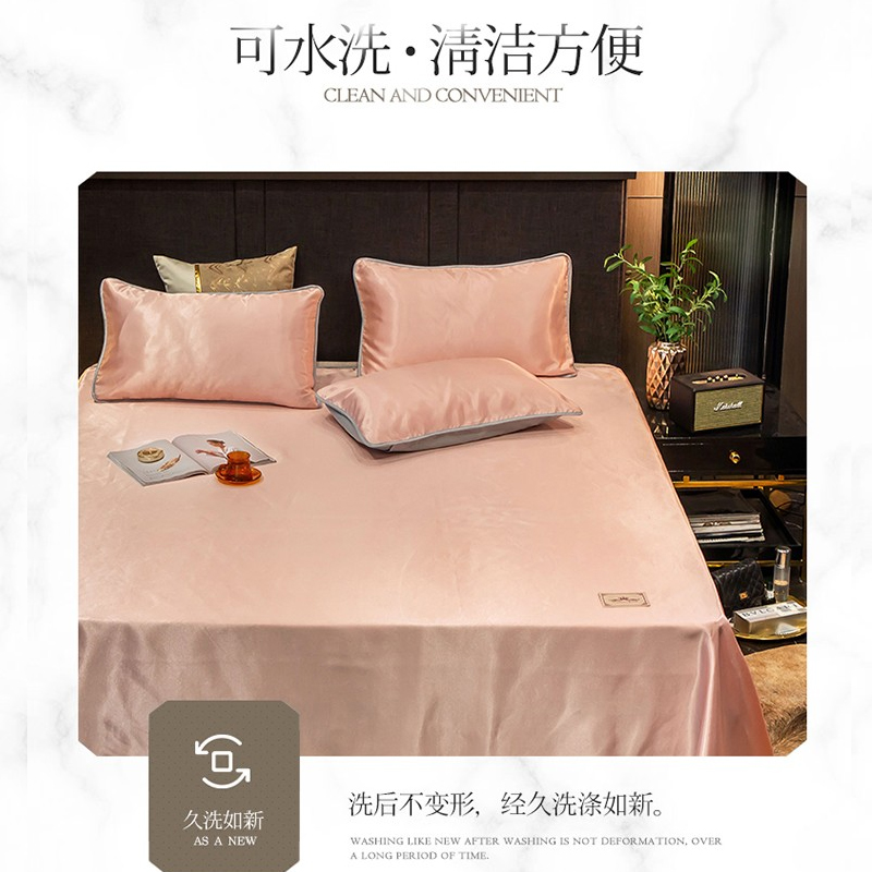 无印纯色床单款冰丝凉席三件套可机洗【冰丝面料(聚酯纤维)/贵族-粉玉】 |