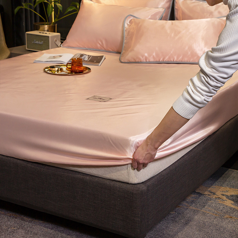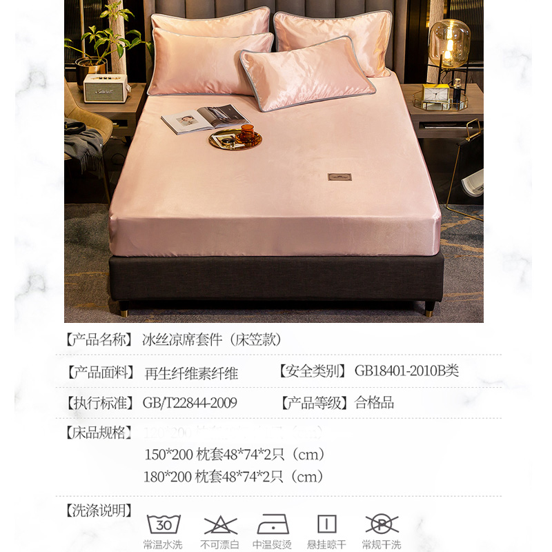 【柔软清爽 凉而不冰】无印床笠款冰丝席三件套【冰丝面料(聚酯纤维)/贵族-粉玉】 |