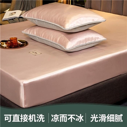 【柔软清爽 凉而不冰】无印床笠款冰丝席三件套【冰丝面料(聚酯纤维)/贵族-粉玉】 |