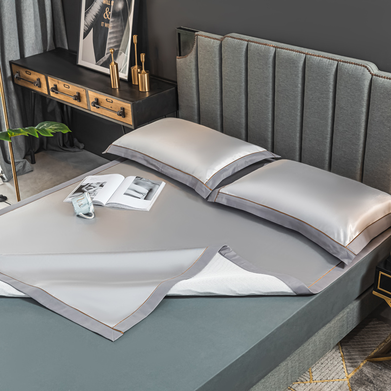 轻奢600D冰丝加厚三明治凉席三件套【聚酯纤维/三明治冰丝月光银】 |