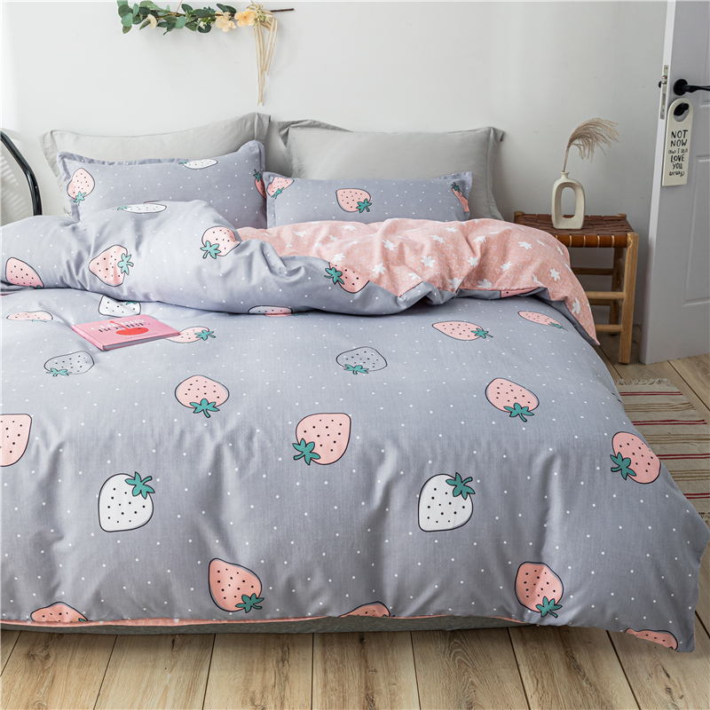 清新时尚ins洛卡棉四件套【洛卡棉(聚酯纤维)/草莓圣代】 |