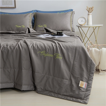 纯色刺绣水洗冰丝大豆纤维夏被【水洗冰丝(聚酯纤维)填充大豆纤维/太空灰】 |