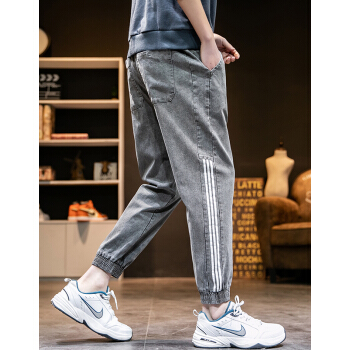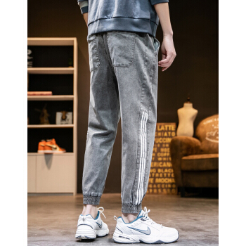 戈凡尔 夏季薄款男士牛仔裤 宽松弹力新品港风潮流运动九分裤休闲哈伦裤修身小脚学生工装裤松紧带束脚裤 807灰色【薄款/宽松/弹力】《86%客户选择》 XL【(31-32码)体重120-140斤】 |