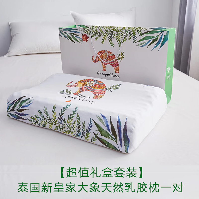 【礼盒套装】泰国新皇家大象天然乳胶枕一对【天然乳胶/大象狼牙乳胶套装】 |
