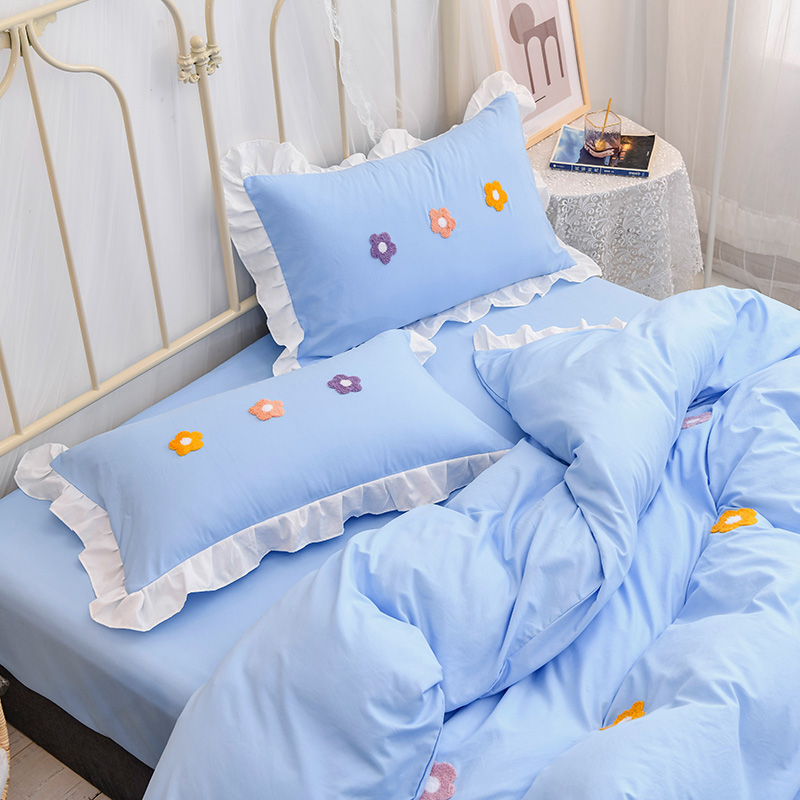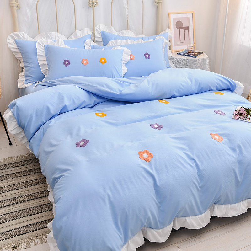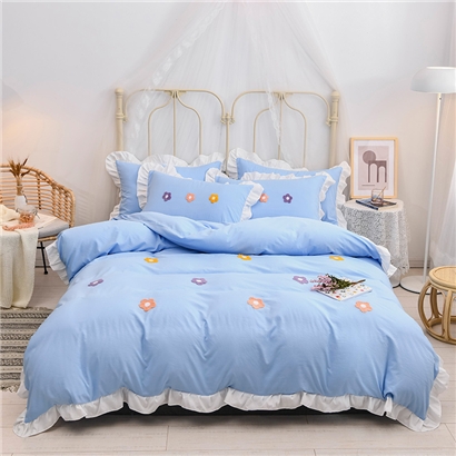 【锦软贴身】泫雅花毛巾绣荷叶边四件套【聚酯纤维/泫雅花-蓝】 |