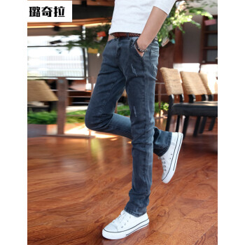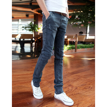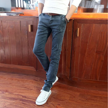 璐奇拉春夏新款牛仔裤男韩版时尚弹力修身小脚裤 男士休闲长裤子 蓝灰色 30 2尺3 |