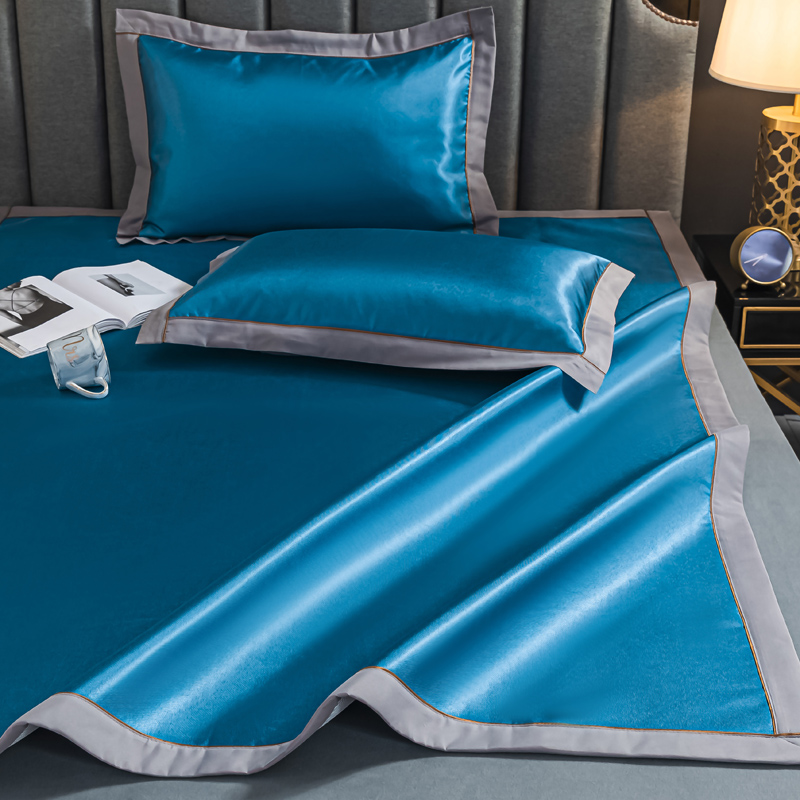 轻奢600D冰丝加厚三明治凉席三件套【聚酯纤维/三明治冰丝深蓝】 |