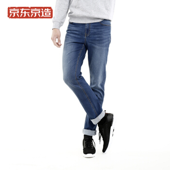 J.ZAO 男士基础合体直筒牛仔裤 休闲牛仔裤男 中蓝色 32(170/82A) |