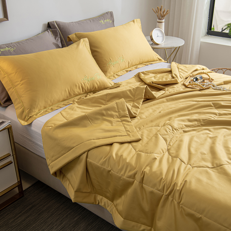 纯色刺绣水洗冰丝大豆纤维夏被【水洗冰丝(聚酯纤维)填充大豆纤维/麦穗黄】 |