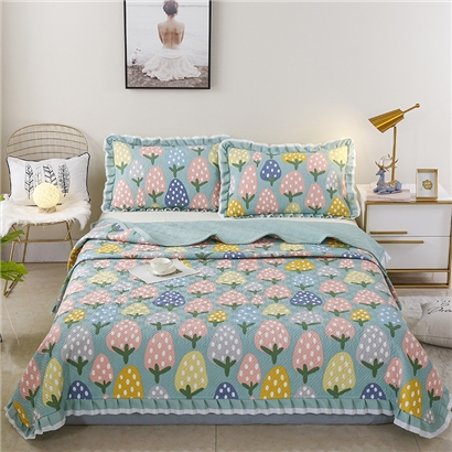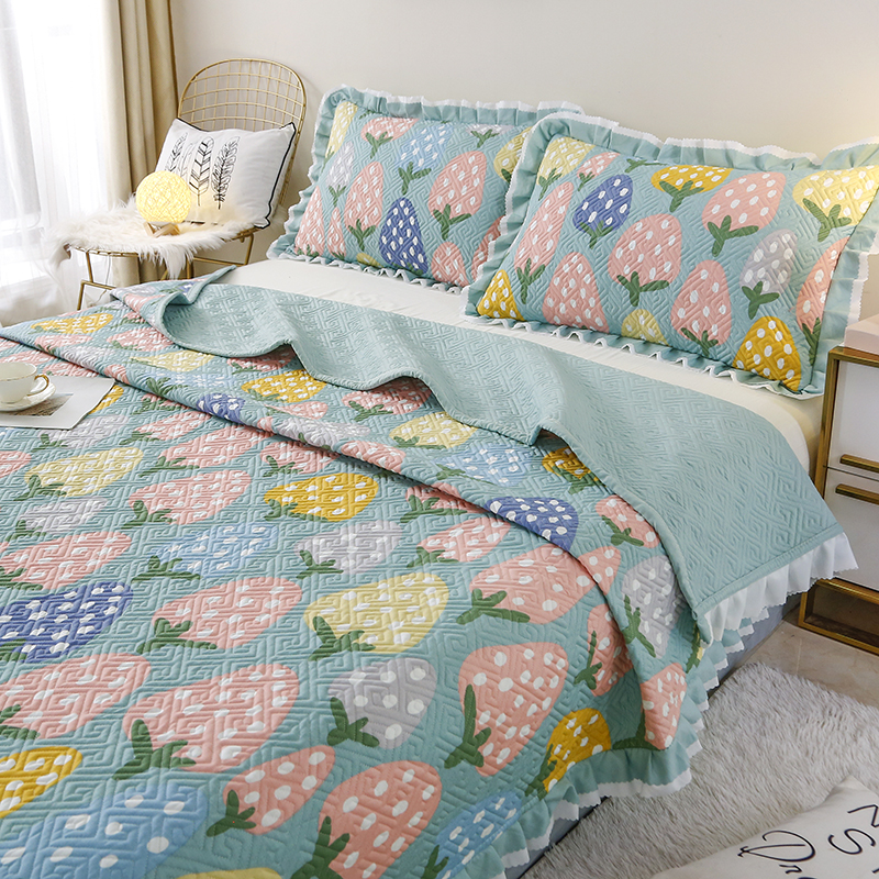 【三层复合】全棉夹棉绗缝床盖三件套【全棉/清新草莓-兰】 |