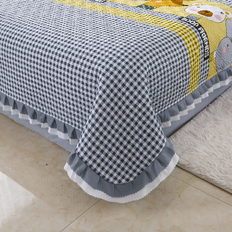 【三层复合】全棉夹棉绗缝床盖三件套【全棉/小可爱灰】 |