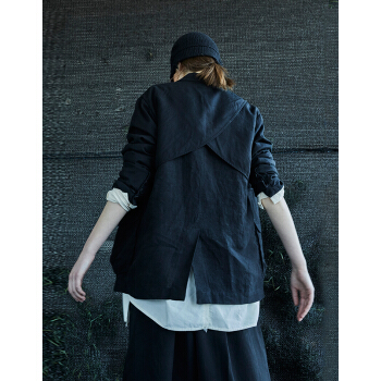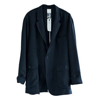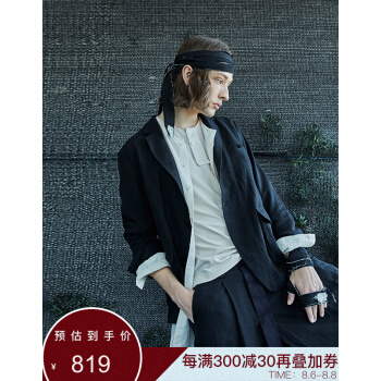 野无西服男原创设计男装秋季新款男士纯色长袖后中开叉设计黑色宽松休闲西装外套男 粗粝黑 S |