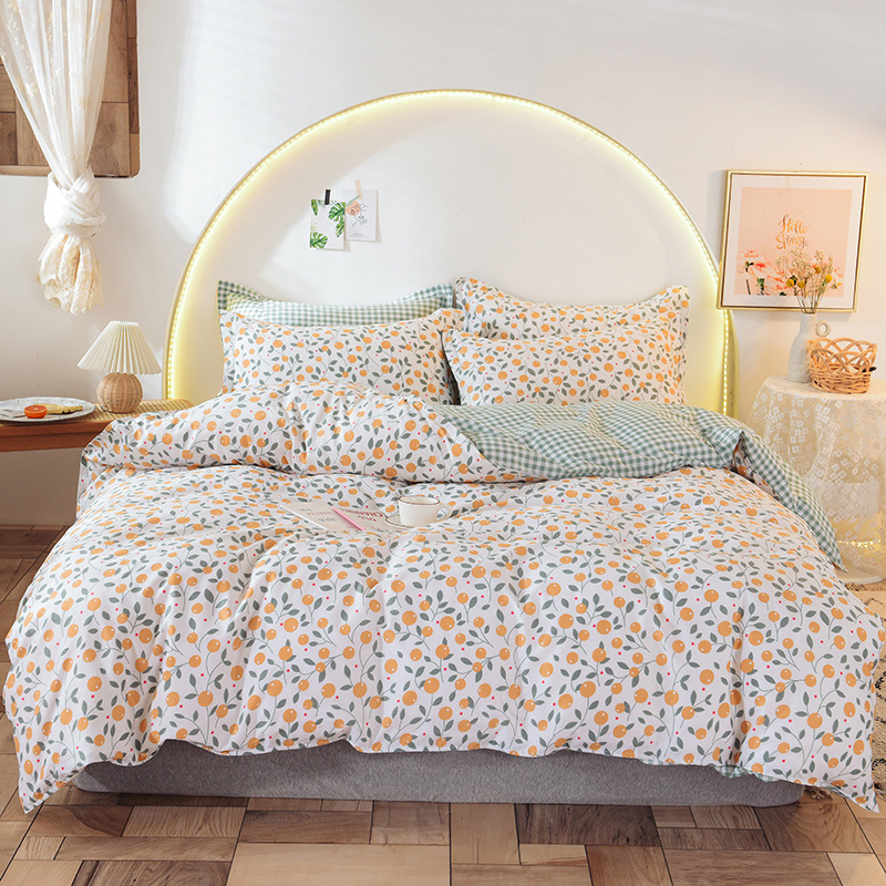 ins清新风AB版简约全棉四件套【全棉/甜蜜橘】 |