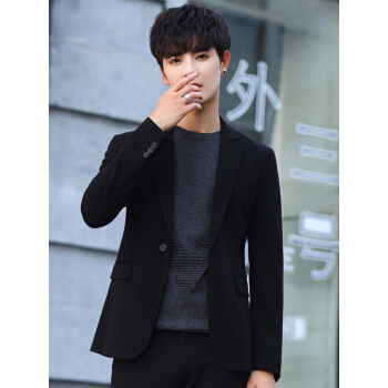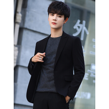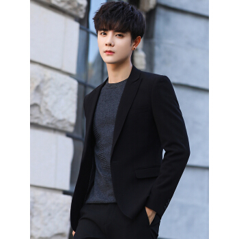 西服男新款男士休闲西装潮流帅气商务小西装男韩版修身青年春秋季外套男单西纯色上衣套装 黑色单西 XL |