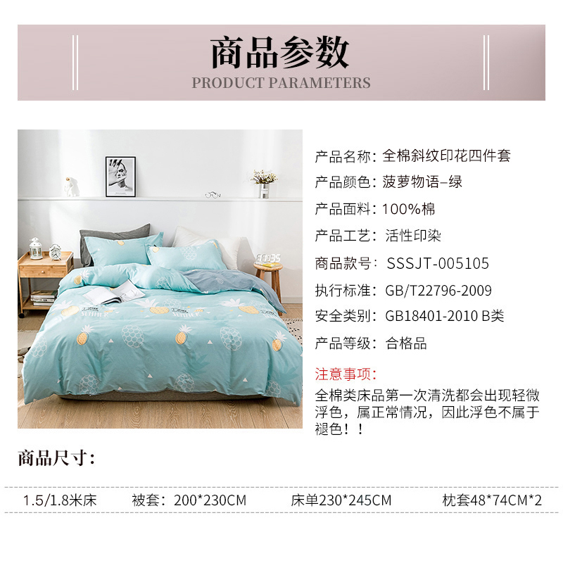 全棉斜纹印花四件套【全棉/菠萝物语-绿】 |