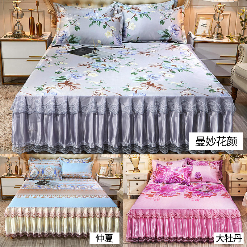 水洗提花冰丝席床裙三件套【聚酯纤维/颜色自选】 |