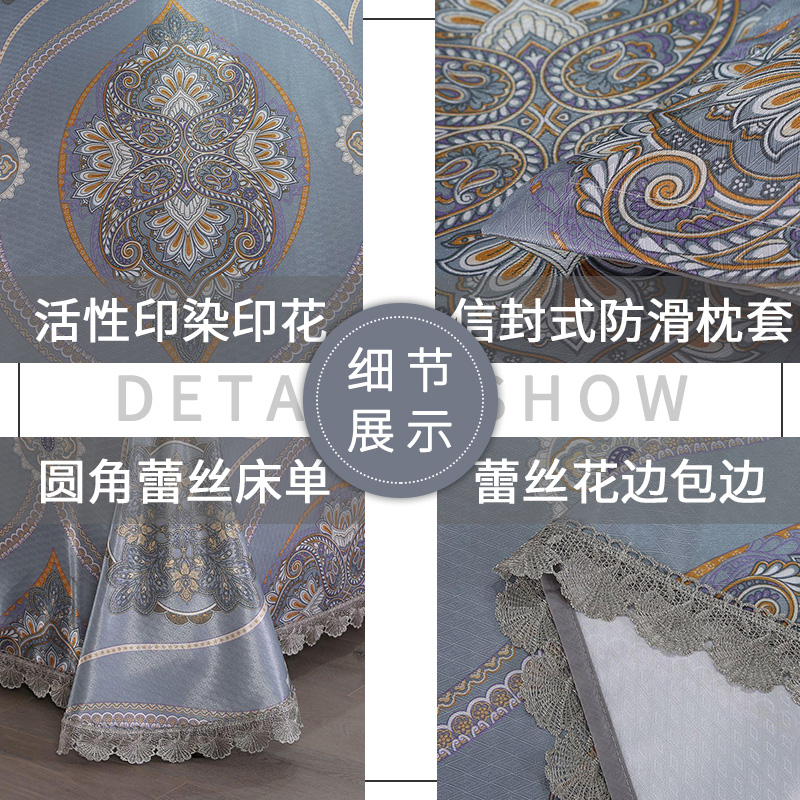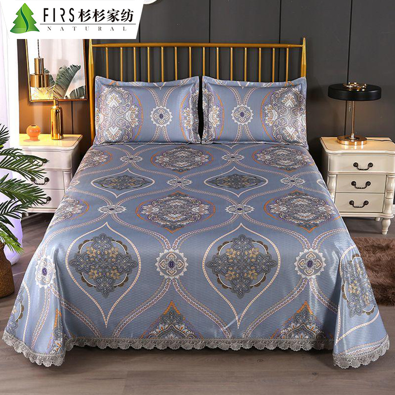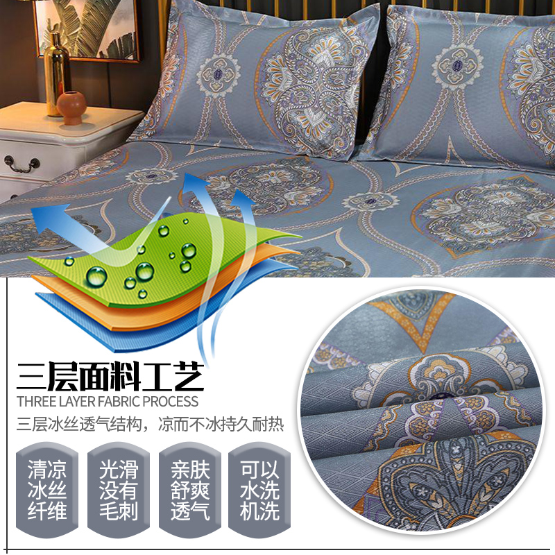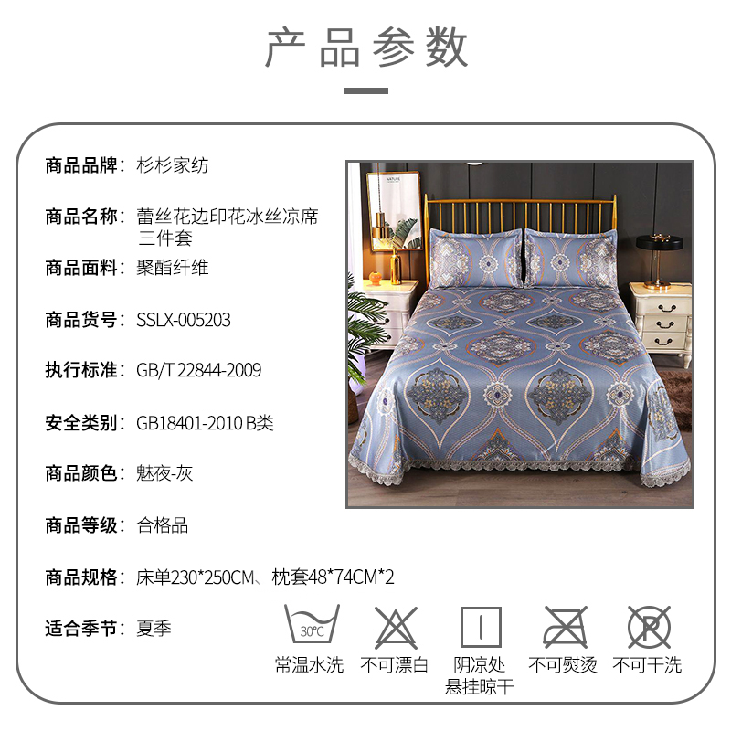 蕾丝花边印花冰丝凉席三件套【聚酯纤维/魅夜-灰】 |