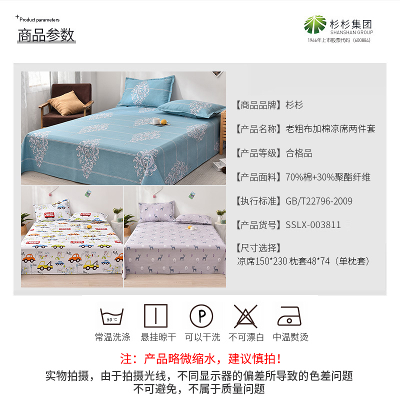 老粗布加棉凉席两件套【70%棉+30%聚酯纤维/颜色自选】 |