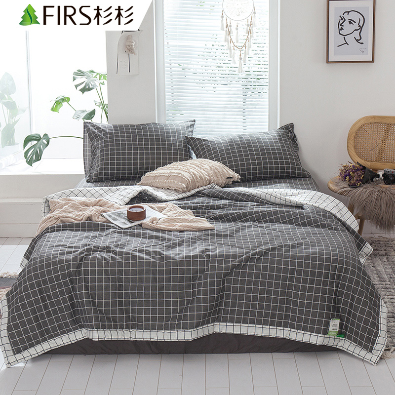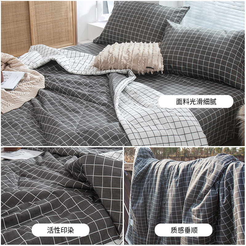 13070全棉夏被四件套【面料:纯棉填充:聚酯纤维/中灰格】 |