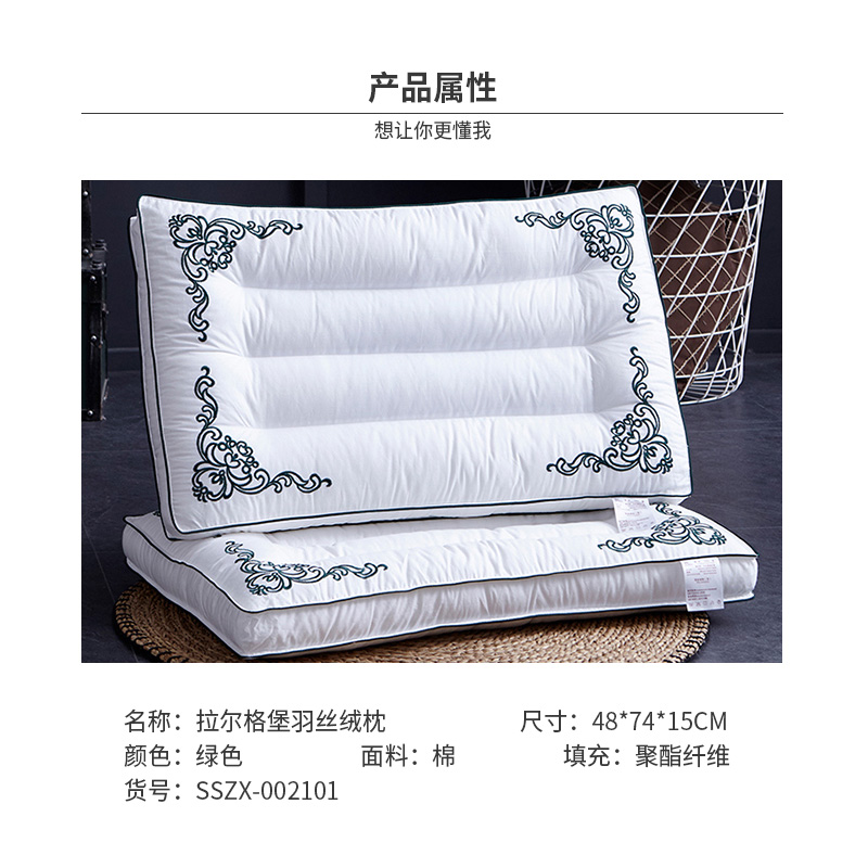 拉尔格堡羽丝绒枕【面料:全棉填充:羽丝绒/绿色】 |