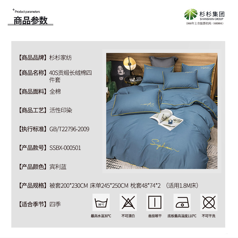 40s贡缎长绒棉四件套【全棉/宾利蓝】 |