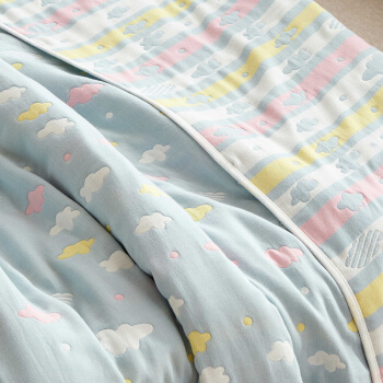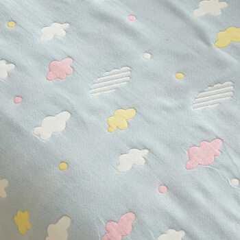恒源祥 午睡空调被毛毯 纯棉三层纱布毛巾被全棉透气儿童夏凉盖毯子床单懒人毯 彩云蓝120×150cm |