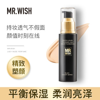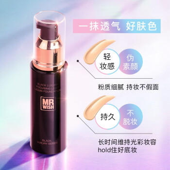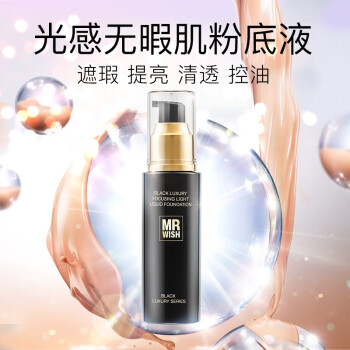 MR.WISH 心愿先生 轻薄无瑕粉底液 学生保湿遮瑕持久控油BB霜 提亮水光肌滋润不易脱妆轻薄裸妆 黑奢聚焦光感粉底液 |