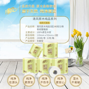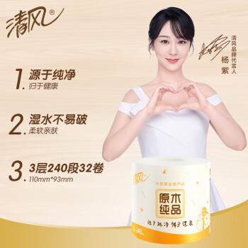 清风 卷纸卫生纸整箱32卷原木纯品3层240段卷筒纸27卷+5卷 纸巾手纸厕纸 |