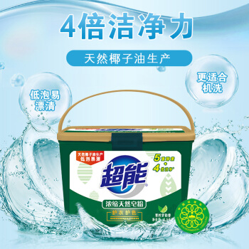 超能 浓缩天然皂粉/洗衣粉1.5kg 4倍浓缩 低泡易漂 带勺 机洗 冷水高效(新老包装随机发货) |