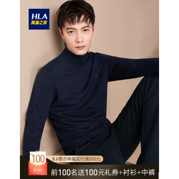 HLA海澜之家净色高领长袖针织衫舒适大方针织衫男HNZAD3R070A 藏青70 180/96A/XL |