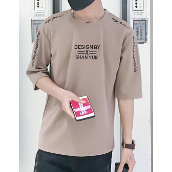 宾的短袖t恤男条纹针织衫新款衣服春季打底衫时尚男士上衣圆领套头半袖 851 卡其 聚酯纤维 XL |