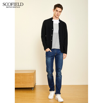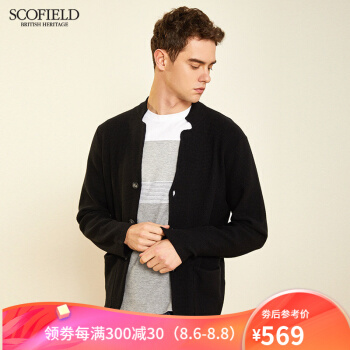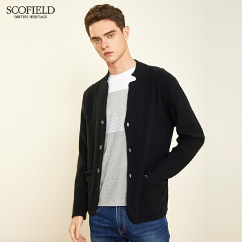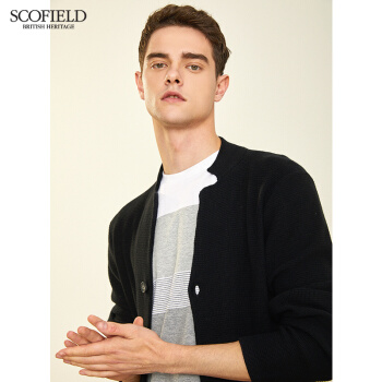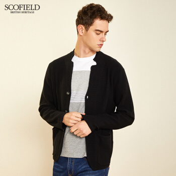 【商场同款】SCOFOIELD春季新款纯色开衫毛衣潮流时尚口袋简约男士针织衫外套男 黑色 180 |