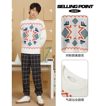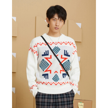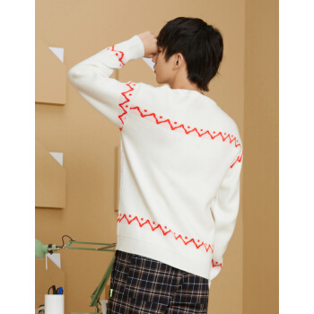 商场同款gxgjeans男装秋新款圆领毛衫男白色卡通上衣针织衫潮流线衫男 白色 180/XL |
