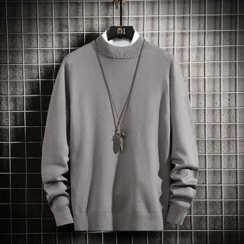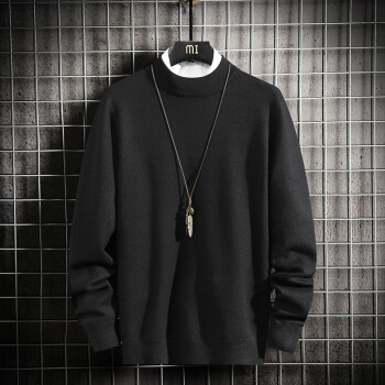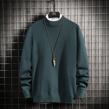 蓝缕金【LANLVJIN】毛衣男秋季新品宽松线衣男青年套头半高领针织衫纯色长袖体恤针织衫 墨绿色 |