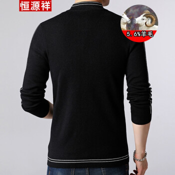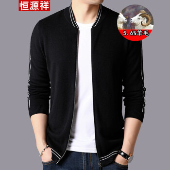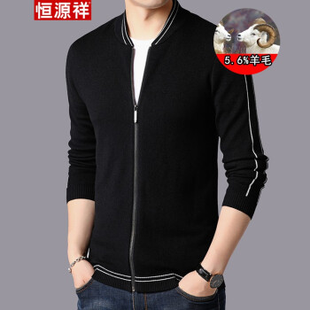 恒源祥男装针织衫2019春秋新品含羊毛经典外套时尚款百搭休闲针织开衫男士毛衣修身潮流外搭 黑色 165 |