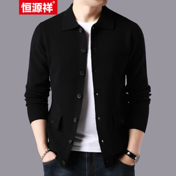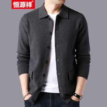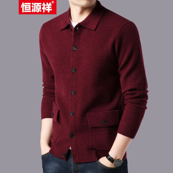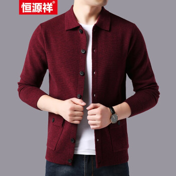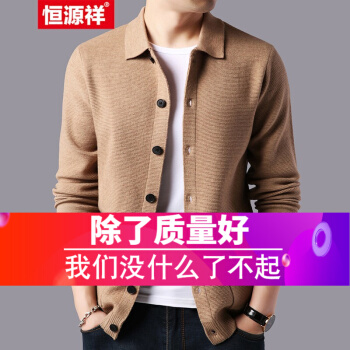 恒源祥羊毛开衫男士毛衣翻领秋冬新款韩版针织衫男系扣口袋纯色外套 驼色 165 |