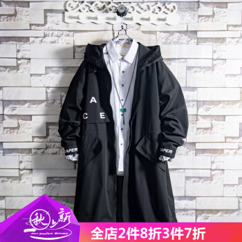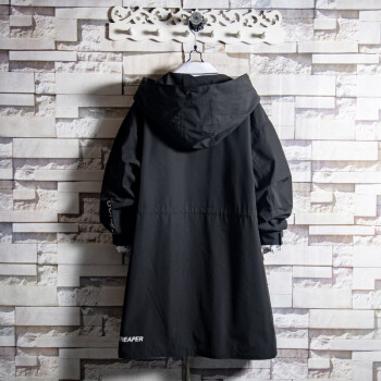 潮型库 风衣男外套中长款韩版春秋季春季新款夹克男春秋帅气青少年连帽大衣 107黑色 4XL |