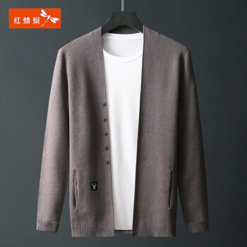 红蜻蜓品牌正品中青年针织开衫男薄款夏季新品男式开衫毛衣春秋薄款外套V领新品欧美风 卡其色 175/L |