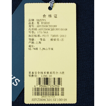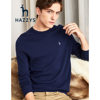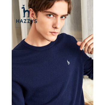 【商场同款】哈吉斯HAZZYS 春秋针织衫男纯色简约百搭针织ABYZD08CX01 藏青色NV 185/104A110 52 |