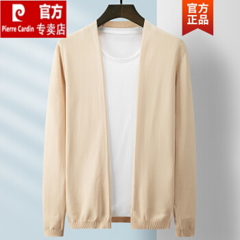 皮尔卡丹轻奢新品 针冰丝薄款衫男装针织衫开衫外套潮夏季凉爽透气纯色防晒衣织 卡其色 XXL |