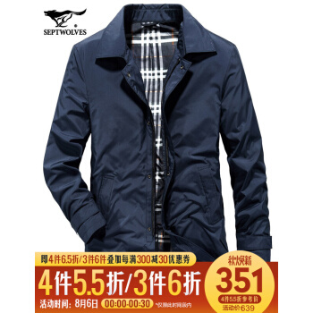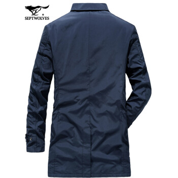 七匹狼风衣男中长款秋季新款中年修身韩版帅气加棉保暖休闲夹克外套潮 102(深蓝) 175/92A/XL |