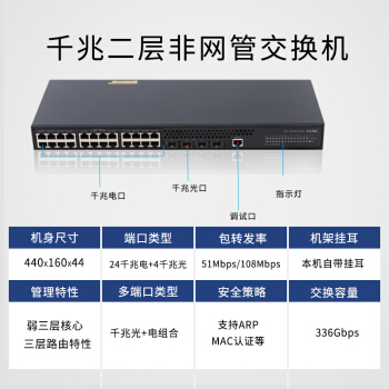 华三(H3C)24口全千兆企业级交换机 智能网管网络交换器 S5120V2-28P-LI |