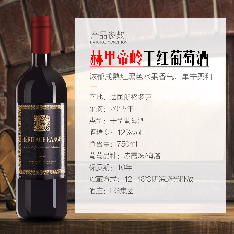 法国原瓶进口赫里蒂岭干红葡萄酒 |