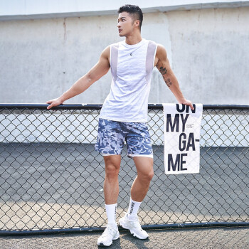 OMG潮流 网纱背心男速干衣运动跑步服紧身健身训练篮球服坎肩 蓝色 L |