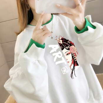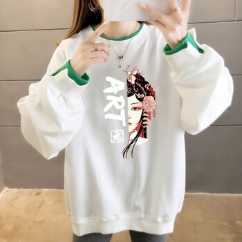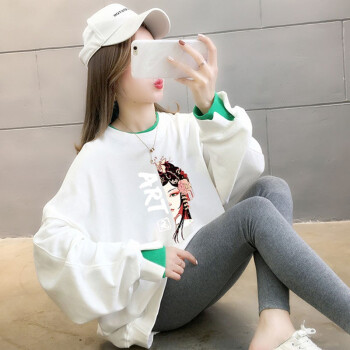 北极绒卫衣女春秋季新品休闲百搭宽松长袖卫衣女复古印花假两件上衣ins潮上衣女2535 白色 请拍正确尺码 |