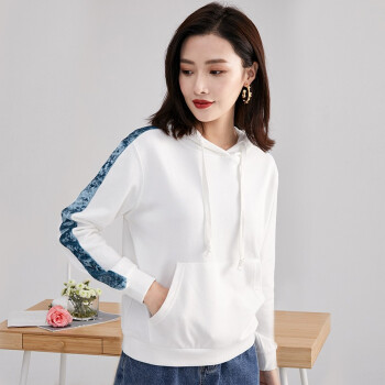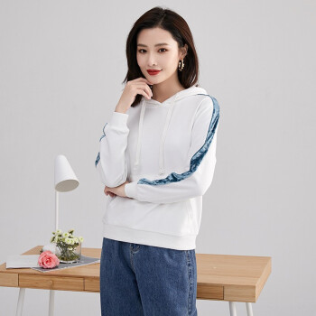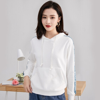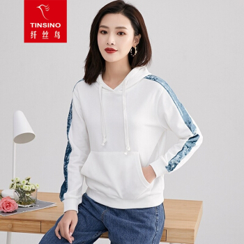 纤丝鸟 TINSINO 卫衣女秋季新品韩版慵懒风连帽卫衣时尚休闲长袖上衣宽松显瘦外套女 白绿色 请拍正确尺码 |
