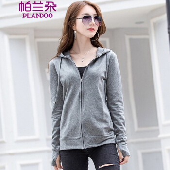 帕兰朵 卫衣女秋季新品连帽拉链卫衣女修身显瘦时尚小外套上衣外搭 灰色 请拍正确尺码 |
