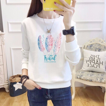 泛哥卫衣女秋冬季新款套装韩版宽松学生长袖T恤打底衫显瘦大码女装外套潮闺蜜装班服定制 白色花藤春秋款 M(建议95-110斤) |