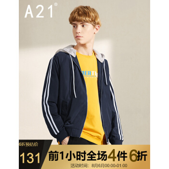 以纯线上品牌A21春季新款男装 运动风衣男士可拆连帽外套长袖潮男棒球服R401114019 深蓝 170/84A/M |
