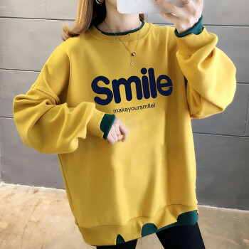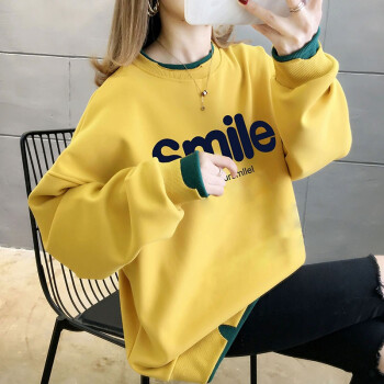 萱蓝卫衣女纯棉ins网红港风复古潮夏季双子领百搭假两件印花字母oversize外套女9747 黄色 均码【建议88斤-135斤】 |